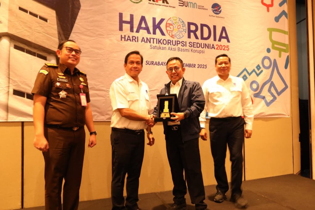 SURABAYA — Dalam rangka memperingati Hari Anti Korupsi Sedunia (HAKORDIA) tahun 2025, Perum LPPNPI (AirNav Indonesia) menyelenggarakan kegiatan sosialisasi pencegahan dan penindakan korupsi dengan tema ”Satukan Aksi, Basmi Korupsi”. Kegiatan yang dihadiri unsur penegak hukum, mitra kerja, organisasi profesi, serta perwakilan karyawan tersebut, digelar di Surabaya, Rabu, 10 Desember 2025.